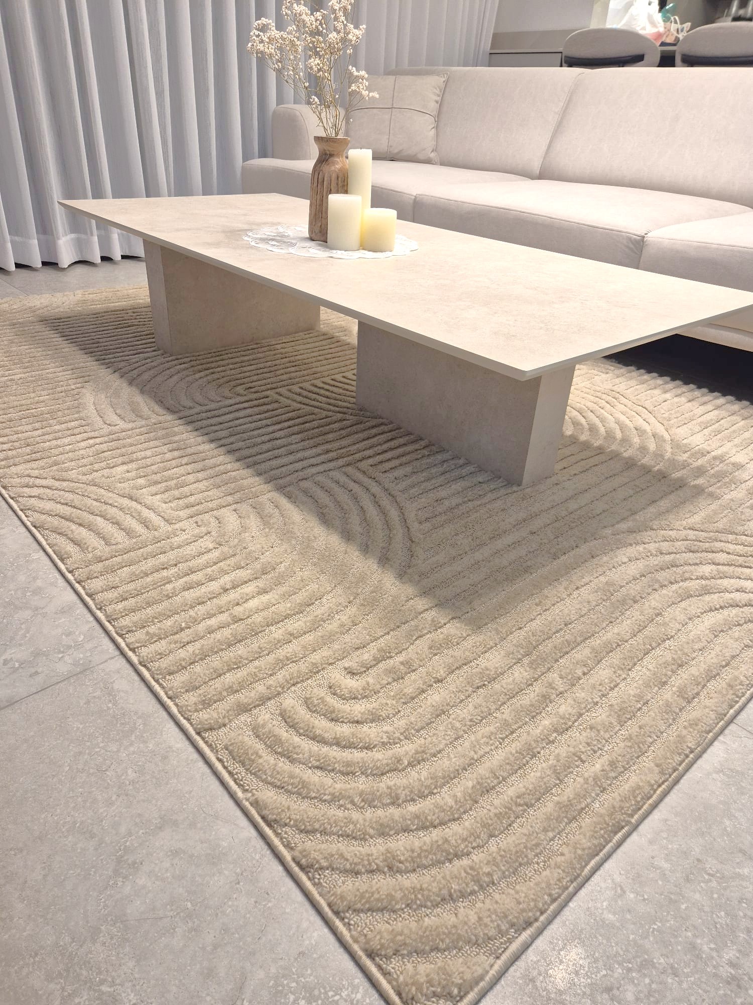 שטיח קשתות בז', מקולקציית טואנה היוקרתית. שטיחים בסטנדרט גבוה, ברמת גימור פרימיום וצפיפות סיבים גבוהה. השטיח בנוי משתי שכבות אריגה בהפרשי גבהים, אשר יוצרות יחד שילוב מושלם ואסתטי, רגוע ונעים, המשדרג כל חלל. מחיר ללא תחרות! עשוי 100% פוליאסטר. עיצוב ייחודי, נעים מאוד למגע, קל לניקוי, לא כבד, איכות חומרים מהגבוהות באירופה. מעוצב על ידי גדולי המעצבים בתחום בהתאמה לקו האופנה השנתי. עובי 17 מ"מ , משקל 2200 גר' למ"ר.
